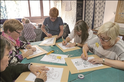 24日,多名从事纺织、文物保护等职业的英国纺织学会会员来到南通蓝印花布博物馆,体验蓝印花布印染技艺。