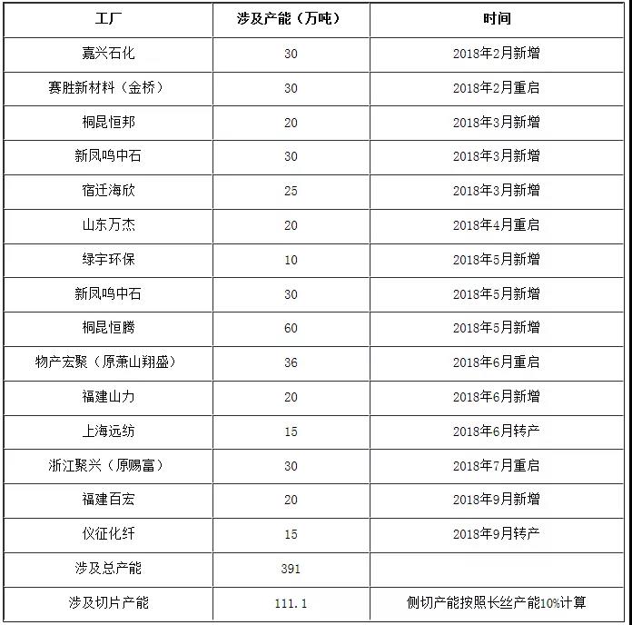 2、年内聚酯切片新增、重启、转产装置较多