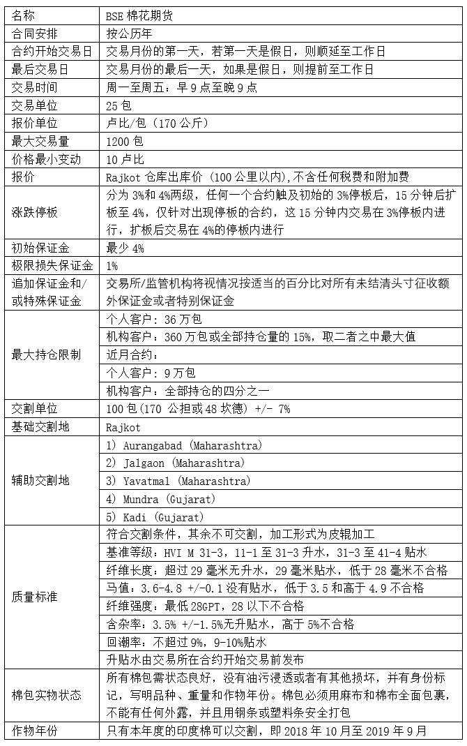 在MCX棉花期货运作多年之后,印度棉花协会(CAI)协助孟买证券交易所(BSE)平台推出第二个棉花期货合约。BSE棉花期货一经推出,受到市场参与者积极响应。