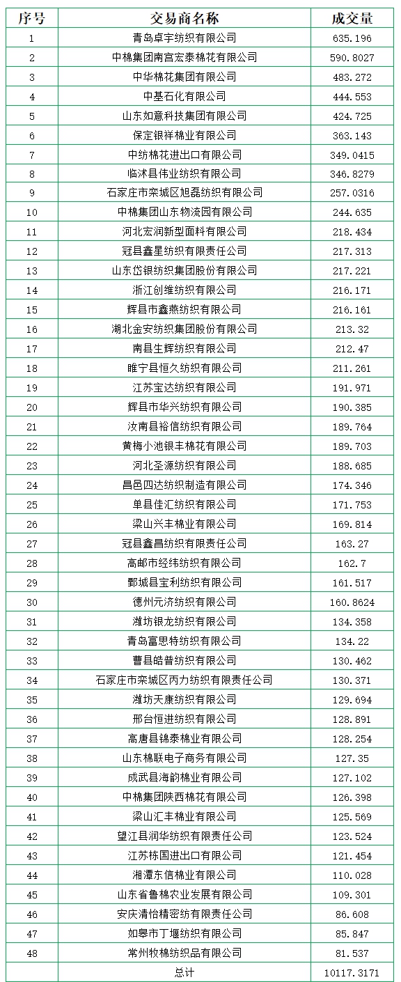 新疆棉成交均价13167元/吨,新疆棉折3128价格14196元/吨,新疆棉加价幅度681元/吨。