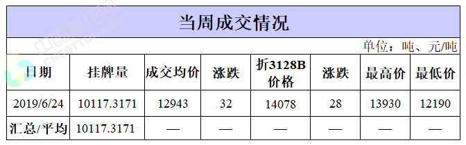 截至6月24日累计轮出销售资源37.10万吨,成交最高价15930元/吨,成交最低价11530元/吨。