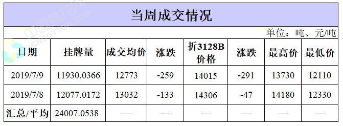截至7月9日累计轮出销售资源49.76万吨,成交最高价15930元/吨,成交最低价11530元/吨。