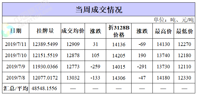 截至7月11日累计轮出销售资源52.22万吨,成交最高价15930元/吨,成交最低价11530元/吨。