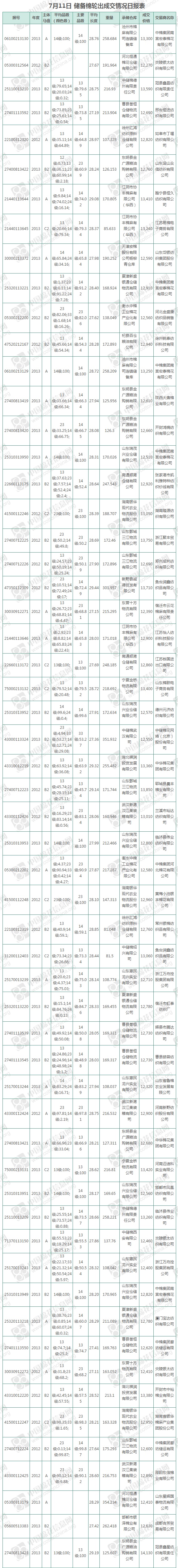 7月11日储备棉轮出销售资源12389.5499吨,实际成交10695.957吨,成交率86.33%,成交均价12909元/吨,较10日上涨31元/吨;折3128价格14136元/吨,较10日下跌69元/吨。