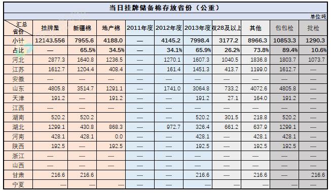 2.当日轮出上市储备棉中有部分为分批抽样公检。抽样比率及抽样方法按照棉花国家标准规定,品质指标包括颜色级、轧工质量、长度、马克隆值、断裂比强度、长度整齐度指标;重量采用原入库公检结果,不再重新检验。