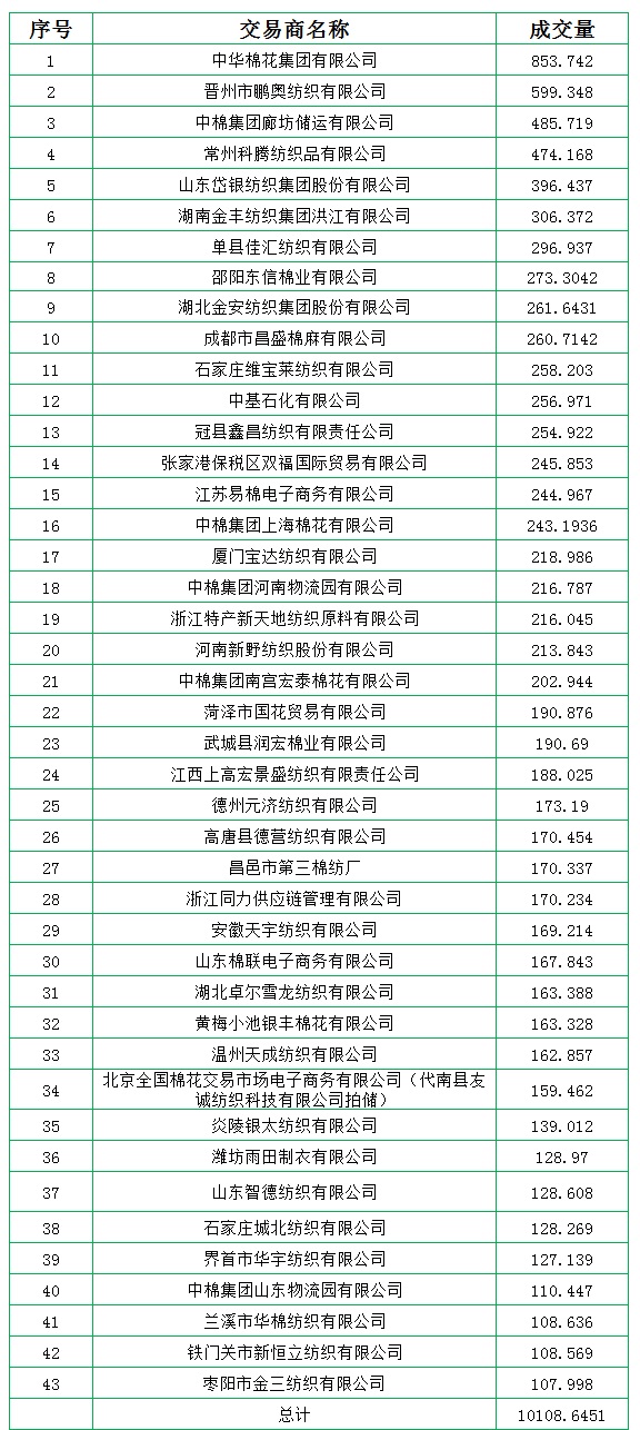 新疆棉成交均价12715元/吨,新疆棉折3128价格13986元/吨,新疆棉加价幅度566元/吨。