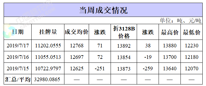 截至7月17日累计轮出销售资源56.73万吨,成交最高价15930元/吨,成交最低价11530元/吨。