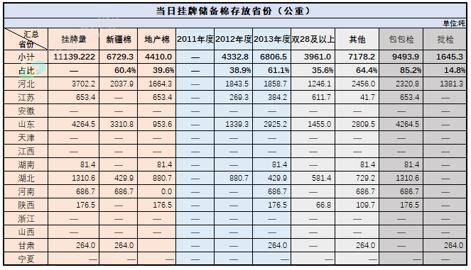2.当日轮出上市储备棉中有部分为分批抽样公检。抽样比率及抽样方法按照棉花国家标准规定,品质指标包括颜色级、轧工质量、长度、马克隆值、断裂比强度、长度整齐度指标;重量采用原入库公检结果,不再重新检验。