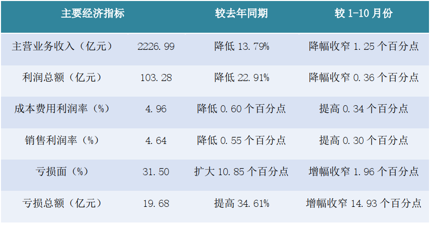 1-11月1581家规模以上印染企业亏损户数498户,亏损面31.50%,同比扩大10.85个百分点,较1-10月收窄1.96个百分点;亏损企业亏损总额19.68亿元,同比增长34.61%,增幅较1-10月收窄14.93个百分点。