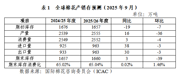 1.2025/26年度全球棉花供需关系由相对宽松转向基本平衡