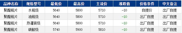 华东聚酯瓶片收于5710元/吨,下跌10元/吨,原料震荡偏弱,聚酯瓶片工厂报稳,市场重心弱势整理。11月货源报盘5640-5800或期货合约2512贴水30至升水50,递盘5690-5730或期货合约2512-30。