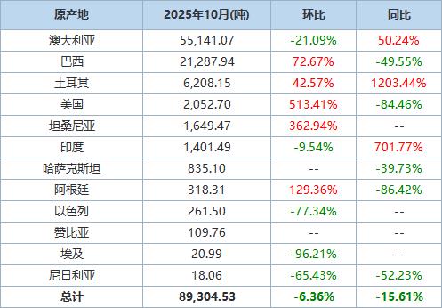 据海关统计数据,2025年10月我国进口棉花约9万吨,环比减少约1万吨,同比下降约15.6%。