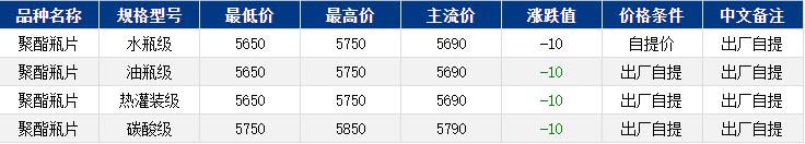 华东聚酯瓶片收于5690元/吨,涨跌值-10元/吨,原油、原料下跌,聚酯瓶片工厂部分持稳,市场重心偏弱调整,12月货源报盘5650-5720元/吨,局部略高5750元/吨或期货合约2602贴水30至升水40,递盘5640-5680元/吨。