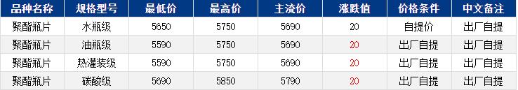 华东聚酯瓶片收于5690元/吨,涨跌值20元/吨,原油上涨,PX强势上扬,成本推动下,聚酯瓶片重心上扬。12月货源报盘5590-5750元/吨,局部略高5780元/吨或期货合约2602贴水10至升水30,递盘5640-5750元/吨,随着原料价格上涨,低价货源有所减少。