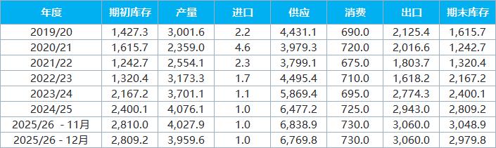 12月11日(周四),巴西国家商品供应公司(Conab)公布的数据显示,2025/26年度巴西棉花产量预估为395.96万吨,同比减少2.9%,上一年度为407.61万吨。
