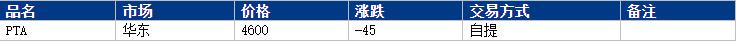 华东PTA现货弱势整理,商谈参考4600元/吨附近。本周及下周主港交割报盘01贴水20,递盘01贴水25,早盘有12月下01贴水20成交。油价走弱成本支撑减弱,早盘现货弱势盘整,基差变化不大。