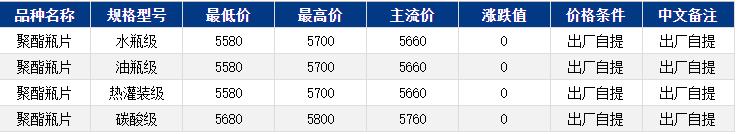 华东聚酯瓶片收于5660元/吨,涨跌值0元/吨,原油大跌,然而原料低开高走,存在较强支撑,聚酯瓶片重心僵持整理。12-1月货源报盘5580-5700元/吨,局部略高5780元/吨或期货合约2602升水20至50,递盘5630-5650元/吨,持货商出货为主,实单递盘零星。