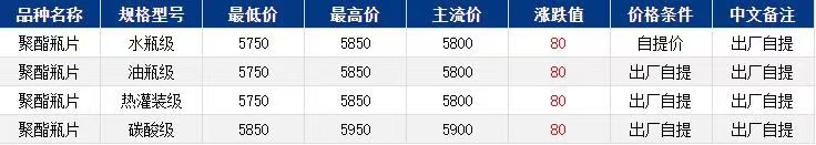 华东聚酯瓶片收于5800元/吨,涨跌值80元/吨,PX依然强势,叠加原油上涨,成本支撑强劲。聚酯瓶片工厂部分报价上调150元/吨,重心大幅上扬。12-1月货源报盘5750-5850元/吨或期货合约2602贴水50,递盘5750-5760元/吨。