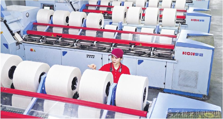 1月4日,工人在位于乌苏市的新润和纺织有限公司纺织车间作业。新年伊始,乌苏市各纺织厂一派繁忙景象,全力冲刺新年“开门红”。