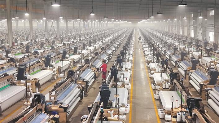1月17日,在阿拉尔经济技术开发区新疆欣明纺织科技有限公司生产车间,先进设备高效运行。作为阿拉尔经开区聚酯产业链下游企业,2025年11月,该公司规划建设的5000台喷水织机全部进场并投产,预计年生产磨毛布、蜡印布等多种面料超6.5亿米。近年来,一师阿拉尔市围绕“打造西部纺织产业高地”目标,集聚75家纺织服装企业,拥有织布机2.7万台,投产纺锭规模达325万锭,形成从原料生产到终端制造的完整产业链。