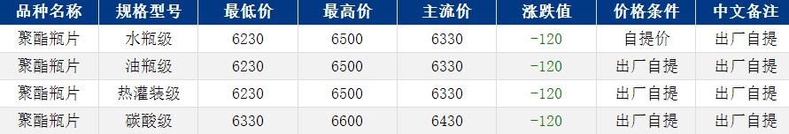 华东聚酯瓶片收于6330元/吨,涨跌值-120元/吨,原油下跌,原料支撑坍塌,聚酯瓶片工厂报价多下调150元/吨,重心随之下滑。1-2月货源报盘6230-6500元/吨或期货合约2603贴水20至升水40,递盘6300-6350元/吨。