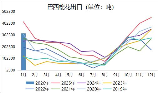 1月巴西棉在前期出口顺畅、棉企抓紧履约的前提下报价上涨,美棉报价则持续偏低,巴西棉性价比明显减弱。加之东南亚大部分国家与美国签署新一轮贸易协定,纷纷加大美棉进口力度,也给巴西棉出口带来阻力。