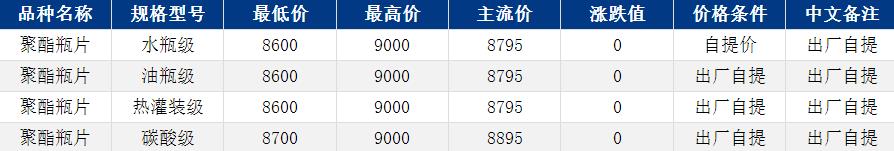 华东聚酯瓶片收于8795元/吨,涨跌值0元/吨,原油上涨,聚酯瓶片高开低走,3月货源报盘9000-8600元/吨,递盘8750-8800元/吨。随着前期低价货源陆续提货,市场前期溢价开始修复。下游买气仍偏弱,交投清淡。