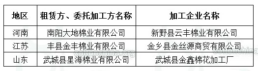 2011年度临时收储第九十五批已审核租赁、委托加工交易商来自全国3个主产区。