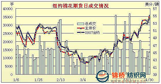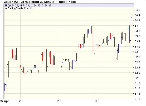 纽约棉花期货主力0907合约近三个交易日交易走势