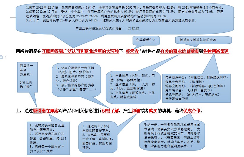 网络营销是在互联网得到广泛认可和商业运用的大环境下,经营者与销售产品有关的商业信息发布到各种网络渠道