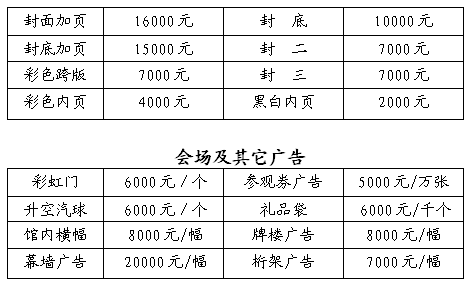 大会统一印制展览会会刊(210mm×285mm),免费赠送给专业人士,欢迎认刊,价目如下: