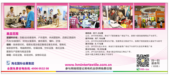 更多展会信息敬请关注官方网站http://www.hmintertextile.com.cn/ 或拨打全国免费热线4006-0532-08咨询