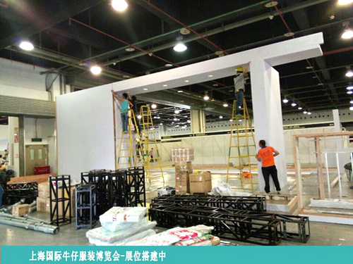 2014年6月10日,上海牛仔服装博览会已在火热搭建中,见下图: