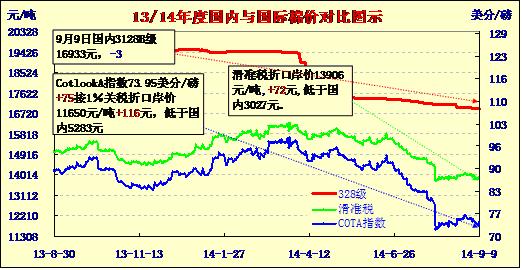 | 时间 | 国内328 | 比国际CotlookA折提货价 | 涨跌 | |||||||