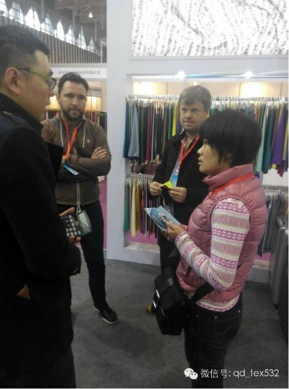 2014年11月27日10点15分,来自法国的行业内国际友人来到南京国际博览中心参观各种时尚面辅料产品,目前,已经与杜尚纺织等10余家面料生产商进行了深入洽谈;同时表示明天(星期五)将继续针对时尚面料与厂商进行洽谈。