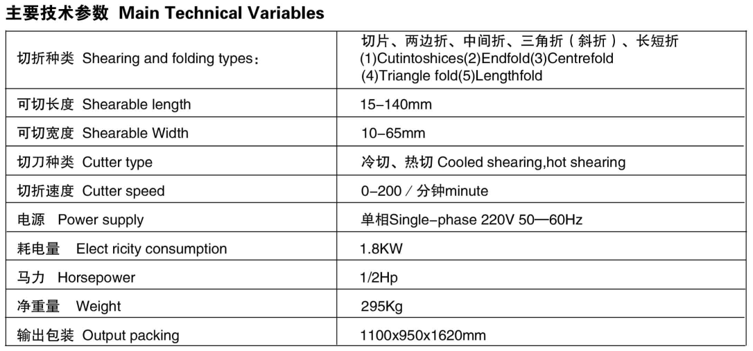 结构紧密、操作简单、商标自行滑到,只需要更换模具达到切折五种类型的商标,采用数码电路驱动主机,实现软启动,加装高性能光电系统,自动识别商标,遇无标、废标自动停机。更有不用工具可调整商标长短的特色,根据用户需求可另配电子眼系统,此系统主要针对印唛商标和无推线商标的切折。