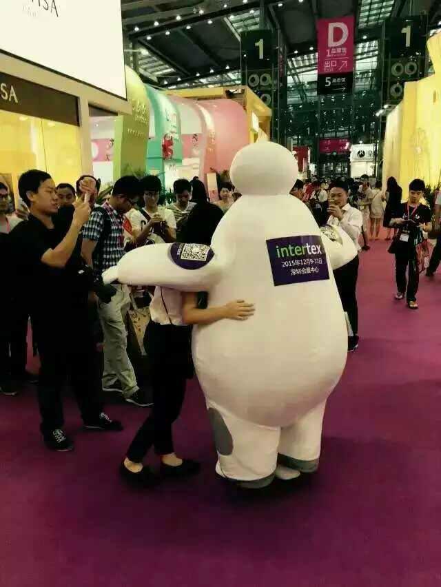 “你好,我叫大白,我是你的私人健康助手。”2015屏幕最火暖男“大白”,胖墩墩、傻乎乎,萌态十足,内藏无尽的温柔、体贴、善良的品质。上周intertex博览会带着呆萌大白到深圳内衣展来宣传造势,广大群众爱不释手、青睐不已,现场好多观众都争着与他合影.