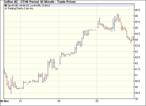 11月25日纽约期棉冲高下滑止涨回落
