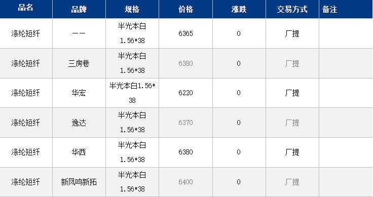 江苏涤纶短纤现货价格暂时稳定在6365元/吨;早间现货主流6360-6400元/吨自提,偏低6220元/吨附近自提。