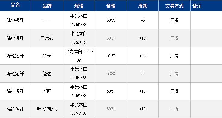 1.4D半光直纺涤纶短纤江浙商谈重心6250-6450元/吨出厂或短送,福建主流商谈6300-6450元/吨现款短送,山东、河北主流6350-6550元/吨送到。