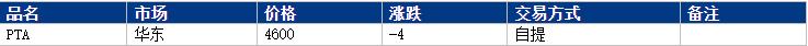 华东PTA现货偏强整理,商谈参考4600元/吨附近。本周及下周主港交割报盘01贴水75,递盘01贴水80,11月下报盘01贴水75,无实单递盘。市场缺乏新的驱动,早盘现货市场维持震荡格局,基差变化不大,实单气氛不足。
