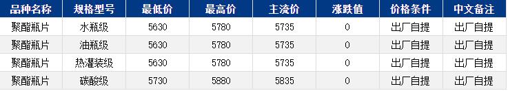 华东聚酯瓶片收于5735元/吨,涨跌值0元/吨,原料震荡偏弱,支撑不足。聚酯瓶片工厂部分下调20元/吨,部分持稳,市场重心僵持整理。11-12月货源报盘5630-5780元/吨,局部略高5820元/吨或期货合约2601贴水20至升水40,基差走弱;递盘5680-5745元/吨。