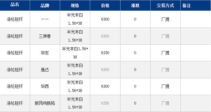 1.4D半光直纺涤纶短纤江浙商谈重心6250-6400元/吨出厂或短送,福建主流商谈6250-6400元/吨现款短送,山东、河北主流6350-6500元/吨送到。