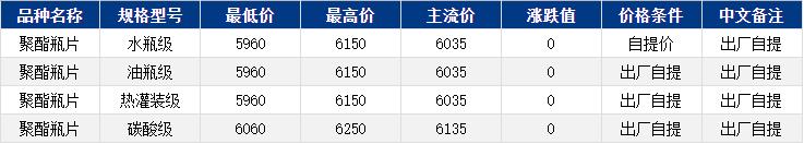 华东聚酯瓶片收于6035元/吨,涨跌值0元/吨,原油继续下跌,原料宽幅震荡,聚酯瓶片工厂报价多上调20-30元/吨,重心区间震荡。1月货源报盘5960-6150元/吨或期货合约2603贴水40至升水100,外围不确定因素较多,业内观望情绪浓厚。实单递盘5990-6030元/吨。