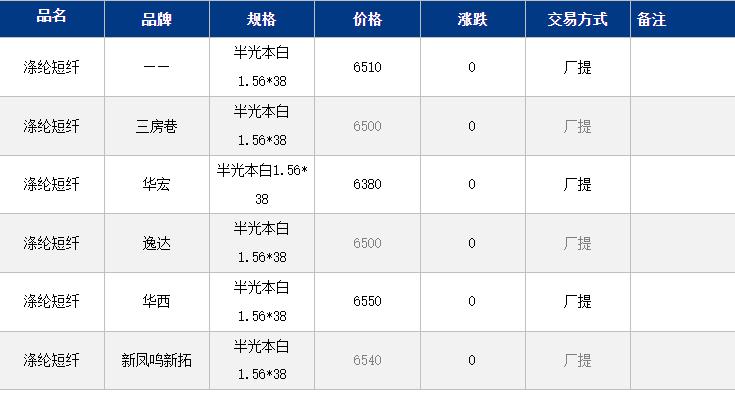 江苏涤纶短纤现货价格暂时稳定在6510元/吨;目前江苏主流6480-6540元/吨自提,偏低货源6370元/吨附近。
