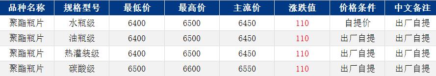 华东聚酯瓶片收于6450元/吨,涨跌值110元/吨,原油、原料价格继续上扬,聚酯瓶片工厂报价多上调100-200元/吨,重心跟涨。1-2月货源报盘6400-6500元/吨或期货合约2603+30至40,递盘6400元/吨或2603合约平水,业内观望情绪浓厚,实单递盘零星。