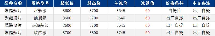 华东聚酯瓶片收于8645元/吨,涨跌值60元/吨,市场担忧供应紧张,原料强势上涨,带动聚酯瓶片重心上扬。4月货源报盘8600-8700元/吨,递盘8530-8550元/吨;基差报盘2606升水550-600,部分略低在8350元/吨或2605升水200。