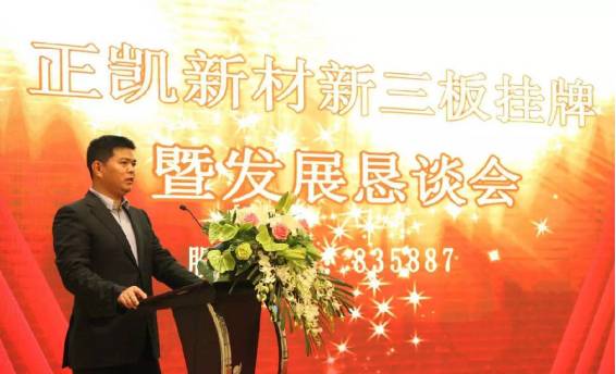 沈总在致辞中再次表达了对于全体人员参加正凯新材挂牌仪式及长期以来对正凯新材的关心和支持的感谢。他表示正凯新材此次成功挂牌新三板是新征程的开始,预示着正凯新材迈入战略转型的快车道,全体正凯人将以此为契机,加倍努力,以敏锐的市场觉察力来适应客户不断变化的需求,提高自身的核心竞争力,实现新的发展。希望各级领导、中介机构、合作伙伴们继续给予关心和支持。正凯人将以饱满的热情、坚定的信念,插上资本的翅膀,实现一个又一个成功跨越!