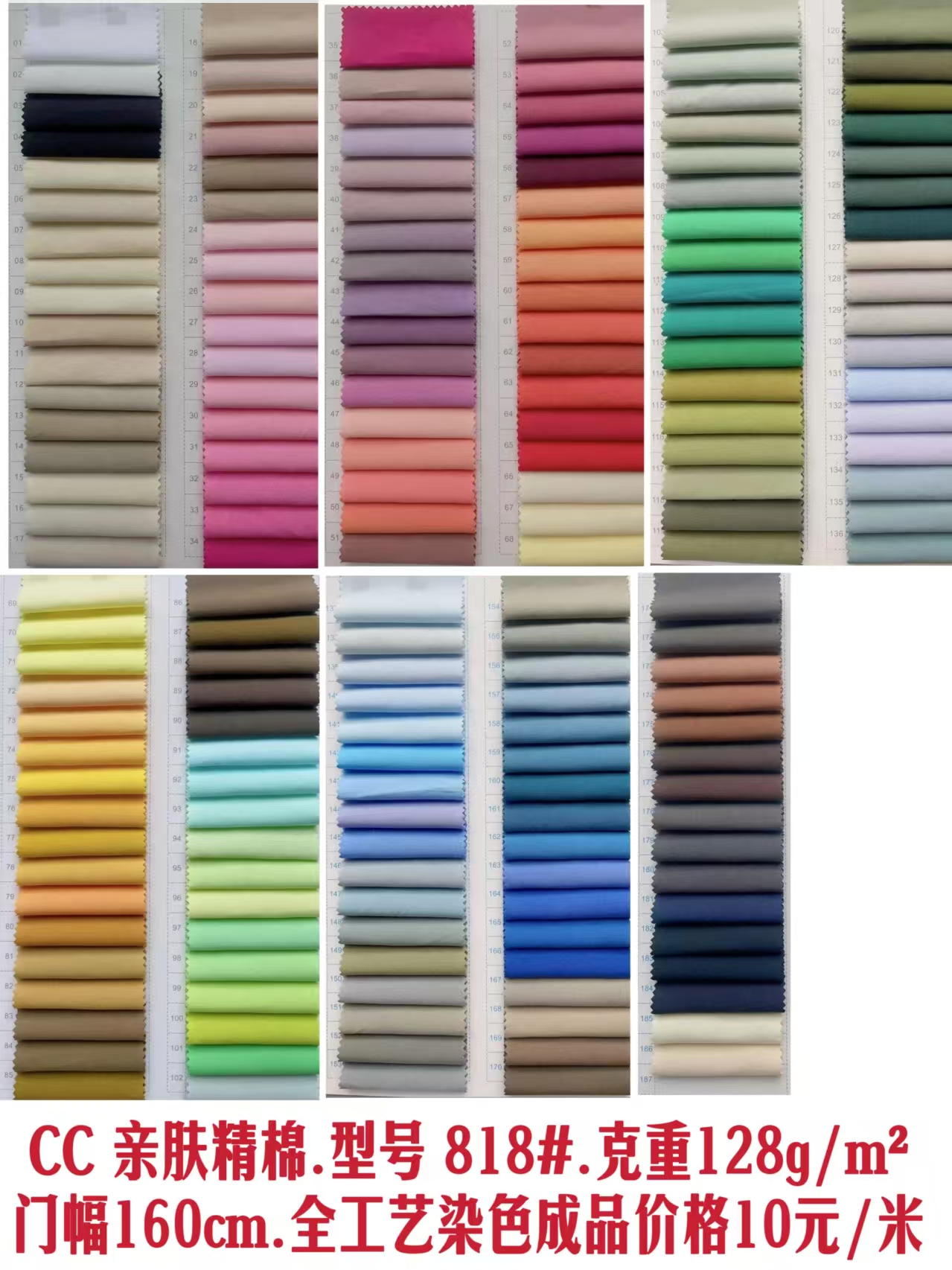 | 备注 | CC 亲肤精棉.型号 818#.克重128g/m2门幅160cm.全工艺染色成品价格10元/米 |