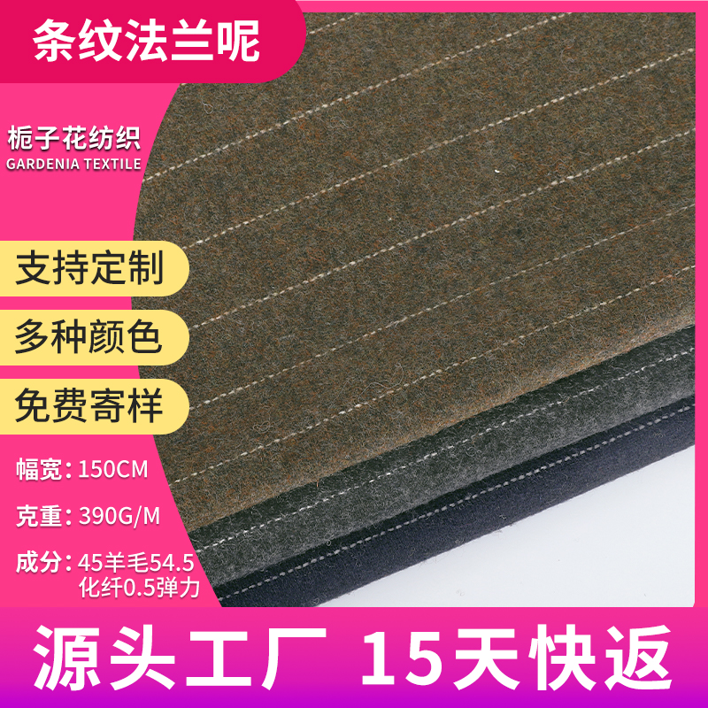 首页 > 面料 > 供货 > 无锡栀子花纺织科技有限公司-45羊毛混纺条纹法兰呢面料